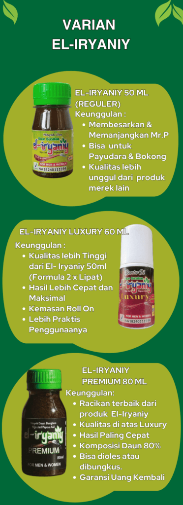 Minyak El-Iryaniy adalah SOLUSI FINAL Anda. Bukan sekadar minyak, tapi formula warisan yang diformulasikan khusus untuk merangsang pertumbuhan jaringan secara alami, aman, dan permanen.